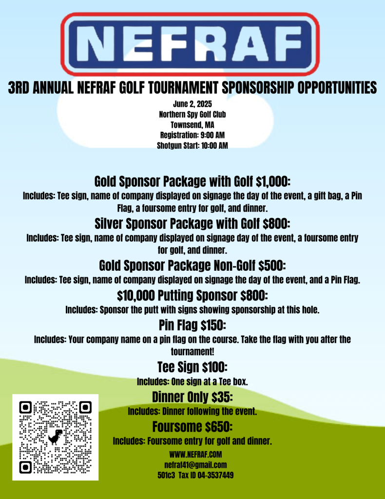 Register or Sponsor today!! https://www.eventbrite.com/e/3rd-annual-nefraf-golf-tournament-tickets-1270013026149?aff=oddtdtcreator
